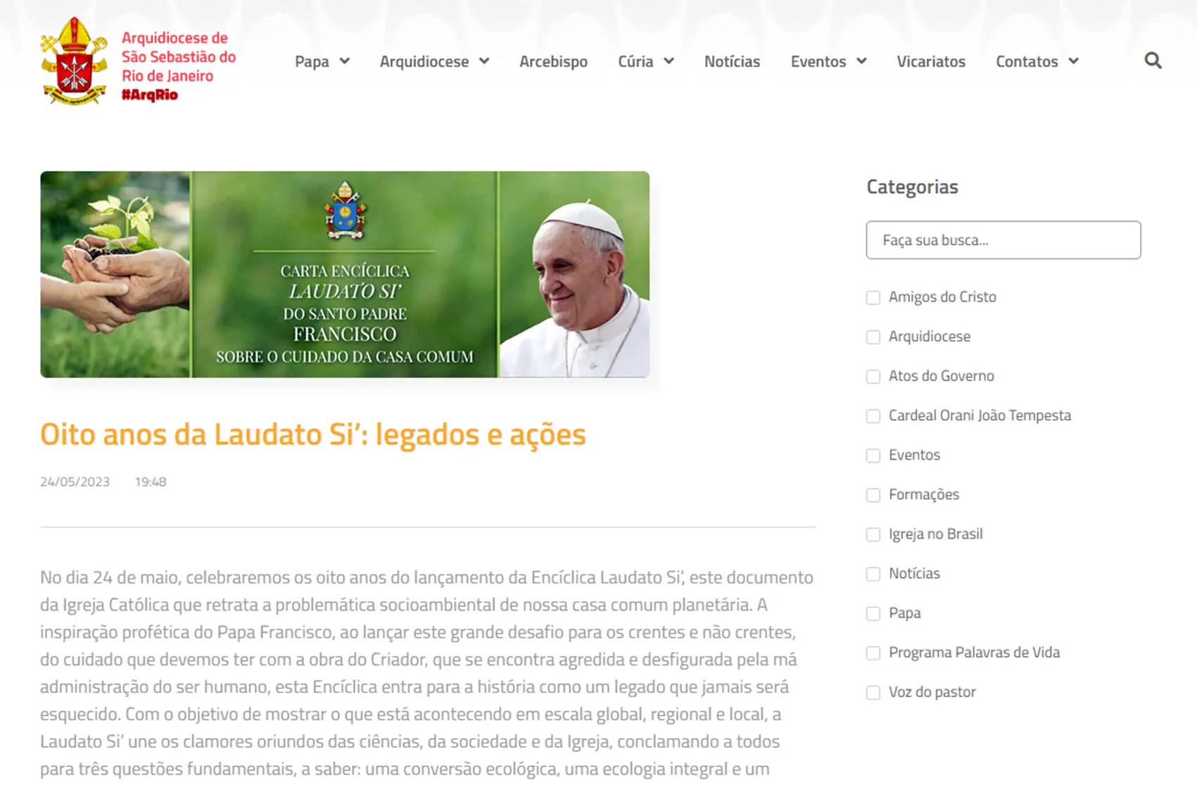 O artigo celebra os 8 anos do lançamento da Encíclica Laudato Si’ do Papa Francisco, documento orientador para o aprofundamento sobre os grandes desafios socioambientais da Casa Comum.