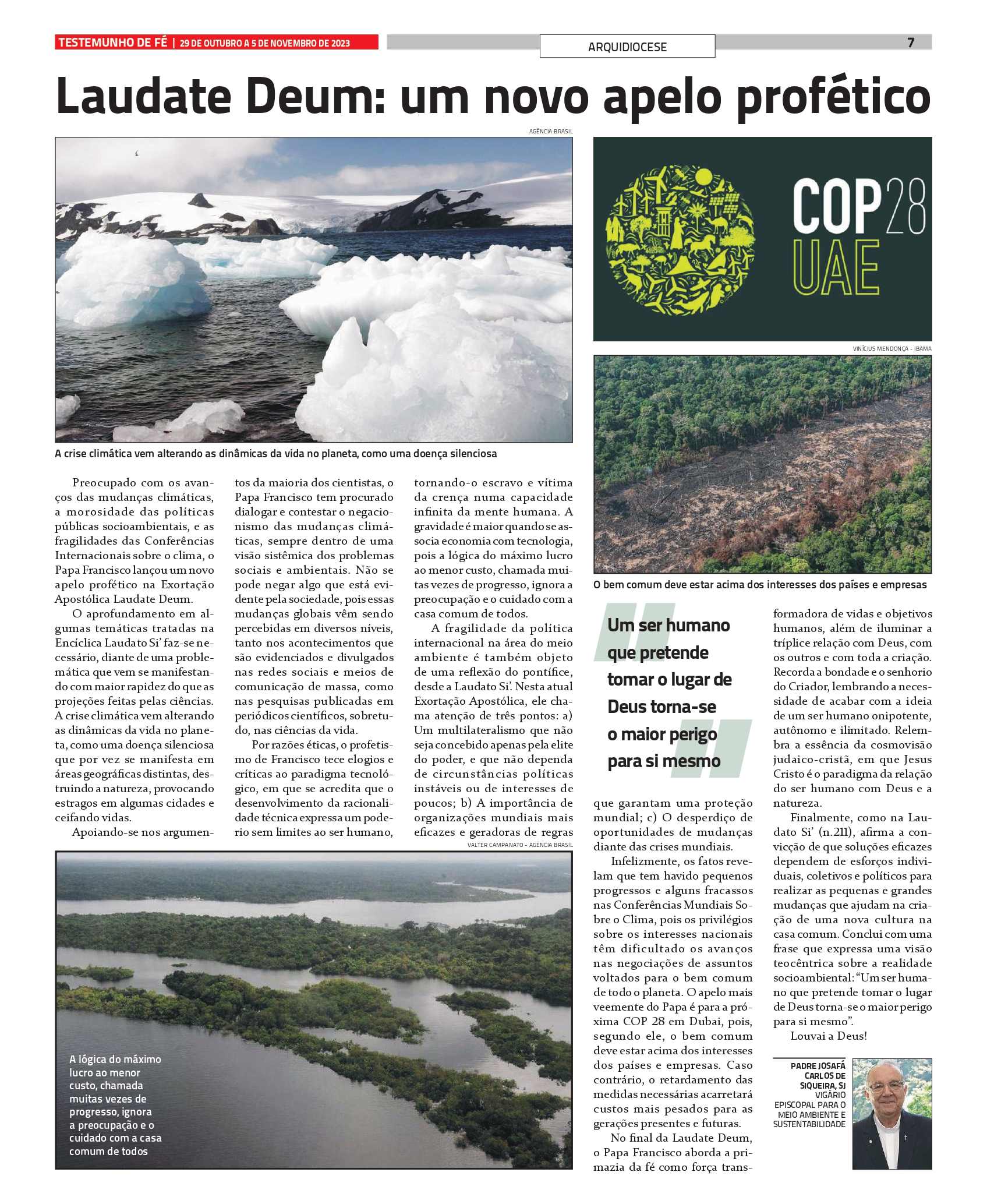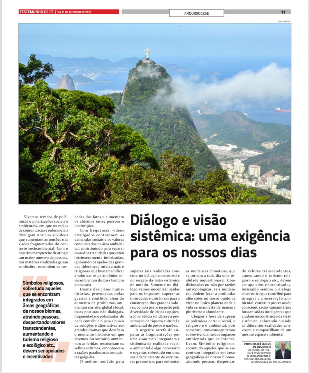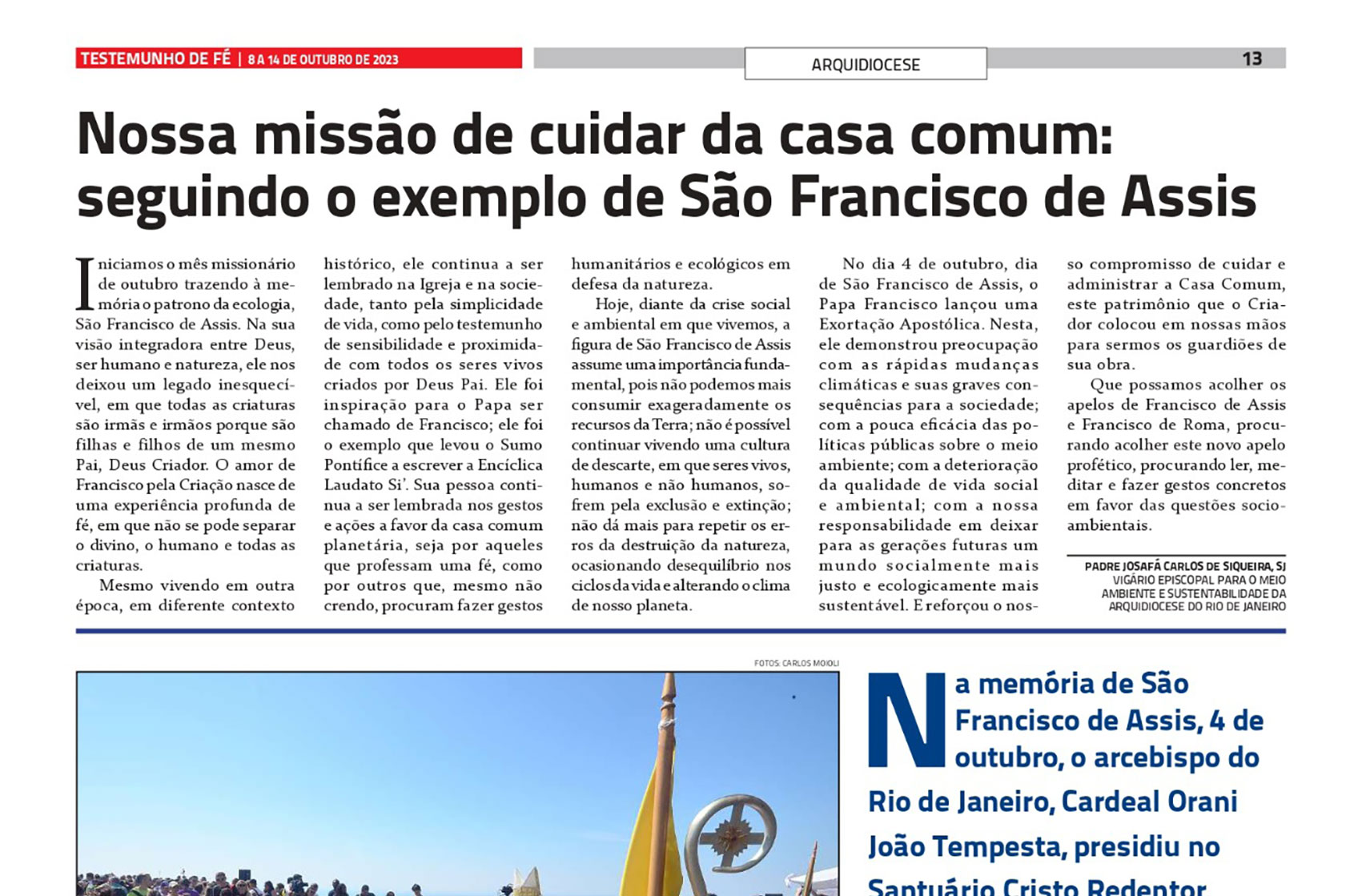 Artigo do vigário episcopal para o meio ambiente e sustentabilidade, Pe. Josafá Siqueira, S.J., publicado na edição do dia 5 de outubro do jornal Testemunho de Fé, traz uma reflexão sobre como os meios de comunicação promovem uma tensão em torno das questões socioambientais.